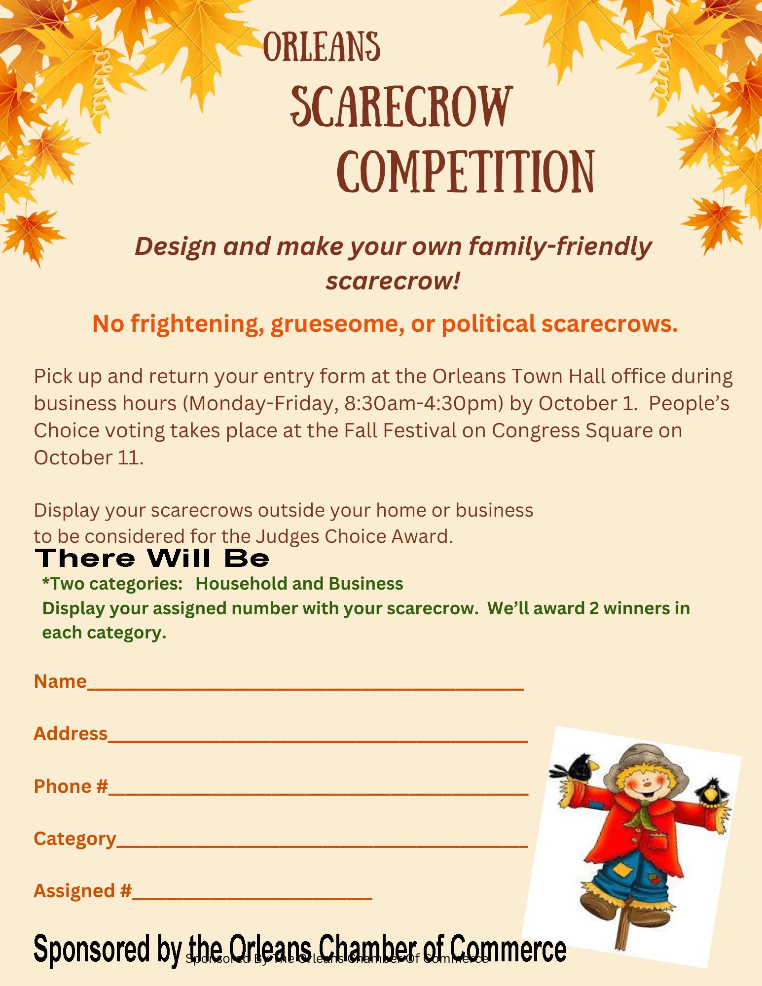 * The Annual 2025 Orleans Chamber of Commerce Golf Scramble will be held at the Green Acres Country Club in Paoli on Saturday, October 18th, beginning at 9 a.m. Four-person teams will compete for cash prizes. Individual, groups, and businesses are encouraged to sponsor a hole for $100 (includes signage). To donate please contact the Chamber office at 865-9930. Player entry fee for the scramble is $60.00 per player or $240.00 per team (includes lunch). To register or sign up for the outing please contact Event Chair Will Busick at 653-9891